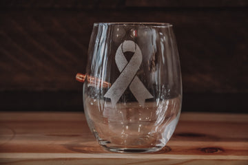Make every drink taste like freedom! This 15oz stemless wine glass is embedded with a real, lead-free .308 caliber bullet. Our glasses are high-quality and handcrafted in our glass workshop in Wisconsin. All packaging and raw materials are made in the...