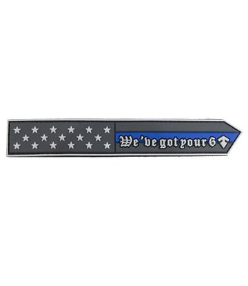 WE'VE GOT YOUR SIX Show support for our nations bravest men and women with the TBL Six Nametape Patch. Deep moulded United States stars and stripes and Thin Blue Line design sized perfectly for nametape size loop platforms. SPECIFICATIONS 1”...