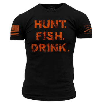 Our three favorite pastimes... Hunting... Fishing... Drinking... But never at the same time...Featuring Realtree AP® Blaze full-color pattern-fill. 100% combed ringspun cotton Ultra-comfortable and soft for all-day comfort Tagless, itch-free design A ribbed collar that won't lose its shape Double-needle...