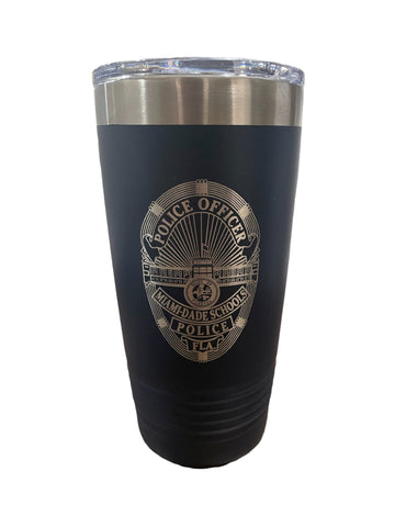 Miami Dade Schools Police Department Badge Laser Engraved onto cup Description: 20 oz. Stainless Steel Polar Camel Tumblers features double-wall vacuum insulation with a clear lid. The mug has a...