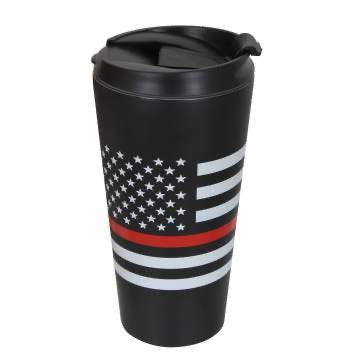 Show your support for firefighters and fire department with Thin Red Line Flag Travel Mug. Thin Red Line Travel Mug Holds 16 Fluid Ounces Double Walled, Stainless Steel Insulation Keeps Drinks Hot US Flag With Thin Red Line Printed On...
